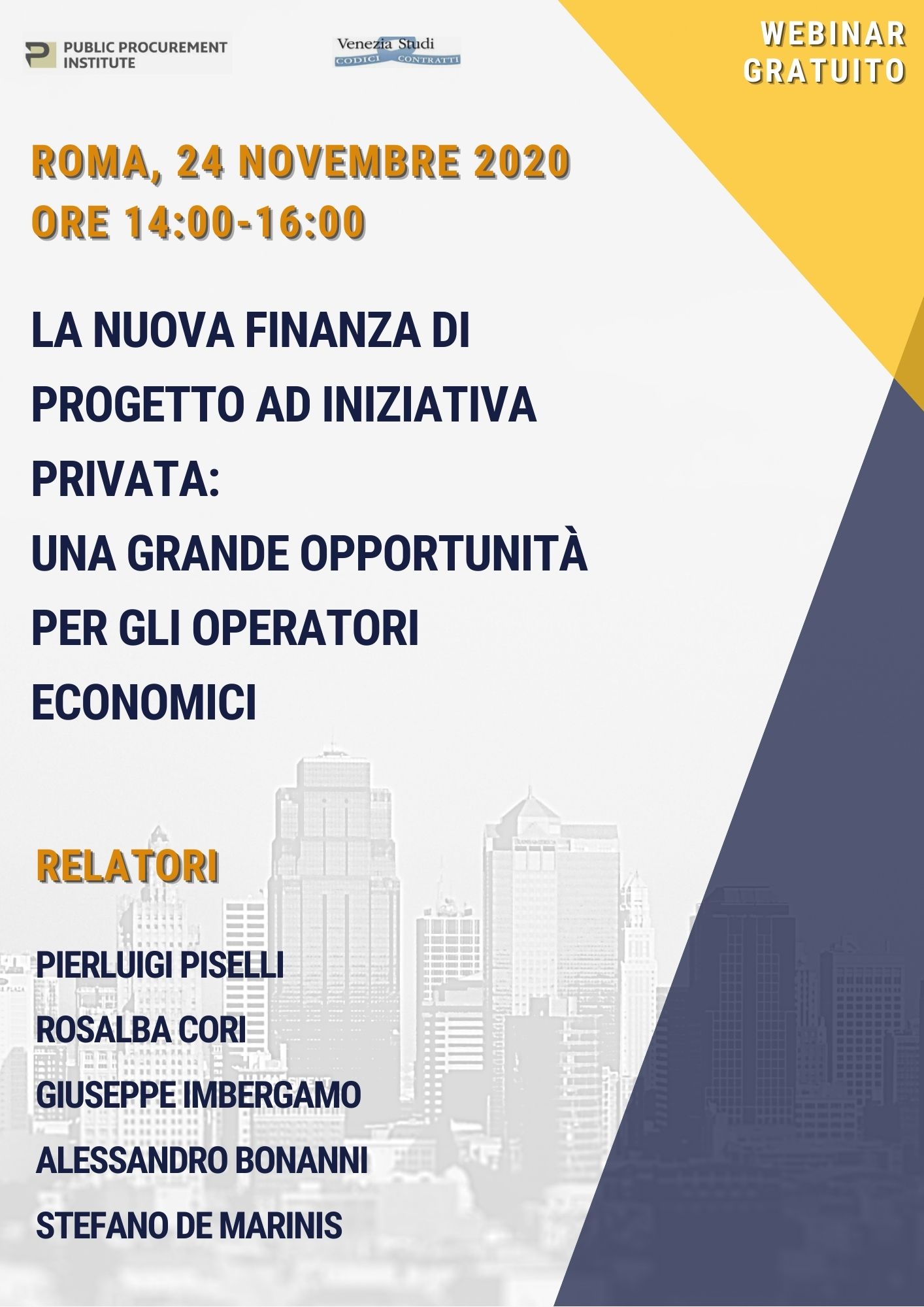 Il Founding Partner Pierluigi Piselli, gli Of Counsel Rosalba Cori, Stefano De Marinis e Alessandro Bonanni e l’Associate Giuseppe Imbergamo analizzeranno i profili normativi ed applicativi del PPP e le prospettive di utilizzo alla luce del recente intervento legislativo.