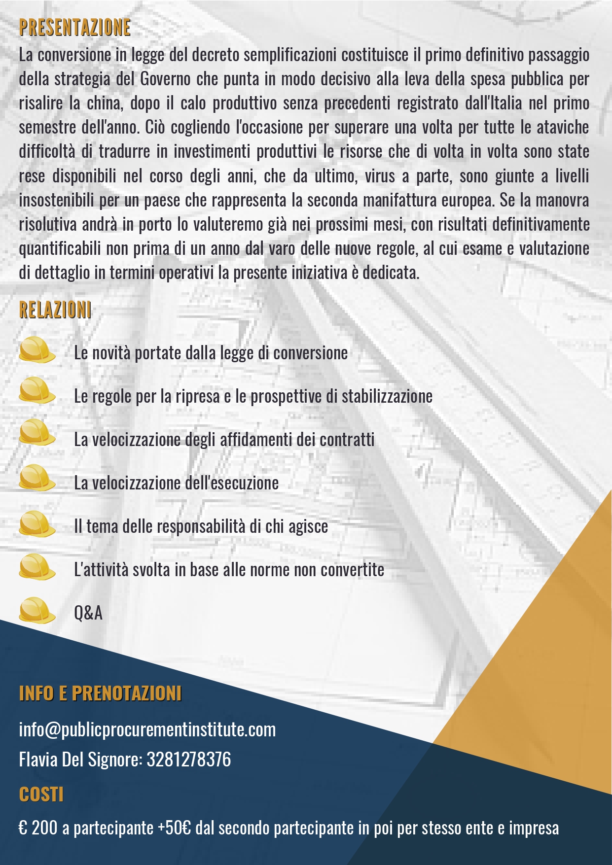 In particolare, saranno analizzate le misure volte alla velocizzazione degli affidamenti e dell’esecuzione dei contratti e le novità in tema di responsabilità.