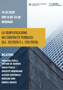 Lo Studio Legale Piselli&Partners, in collaborazione con Public Procurement Institute e Venezia Studi, organizza per mercoledì 14 ottobre un webinar di approfondimento operativo, con lo scopo di fornire agli operatori del settore gli strumenti giusti per orientarsi nella nuovo contesto normativo.